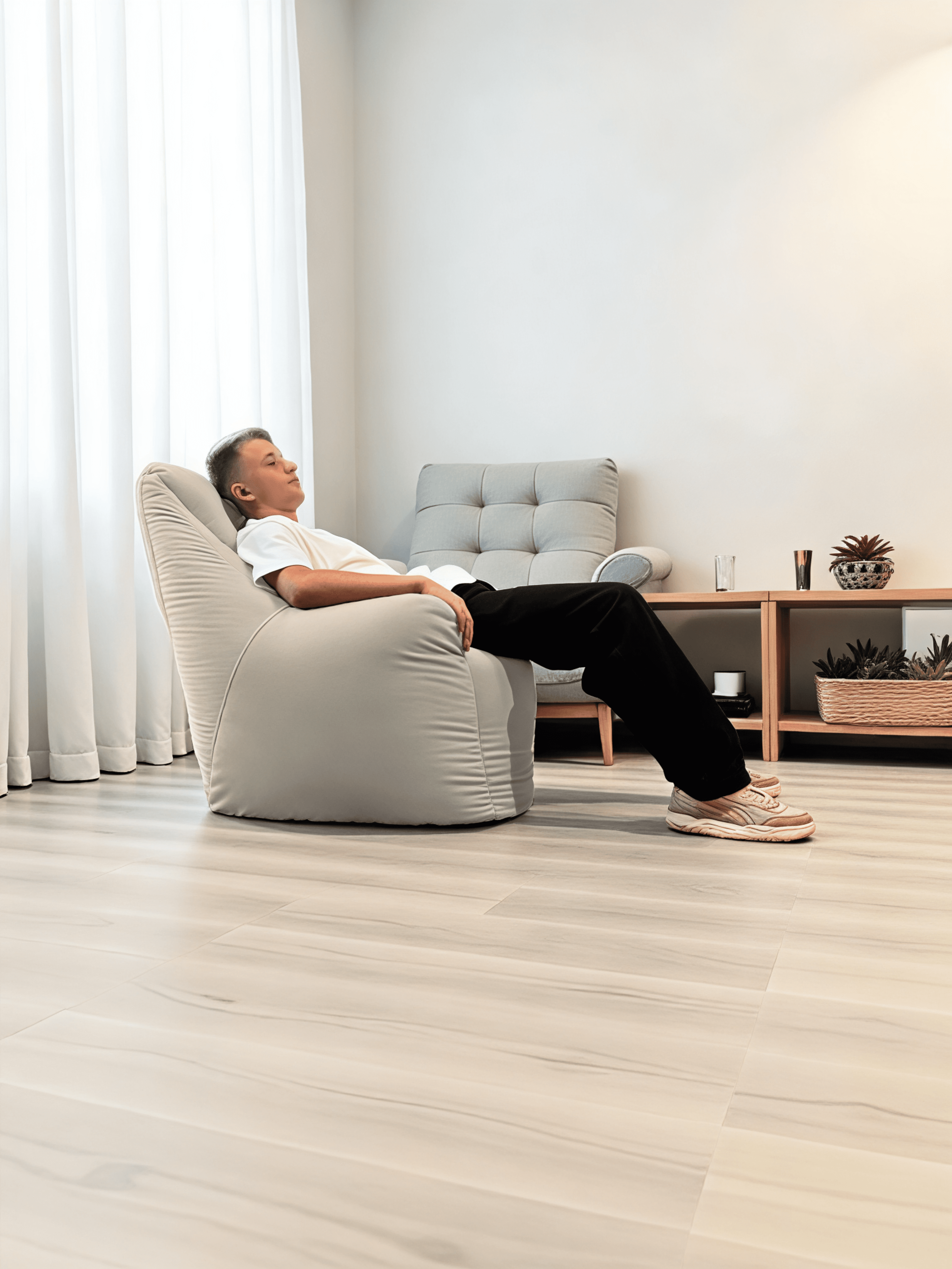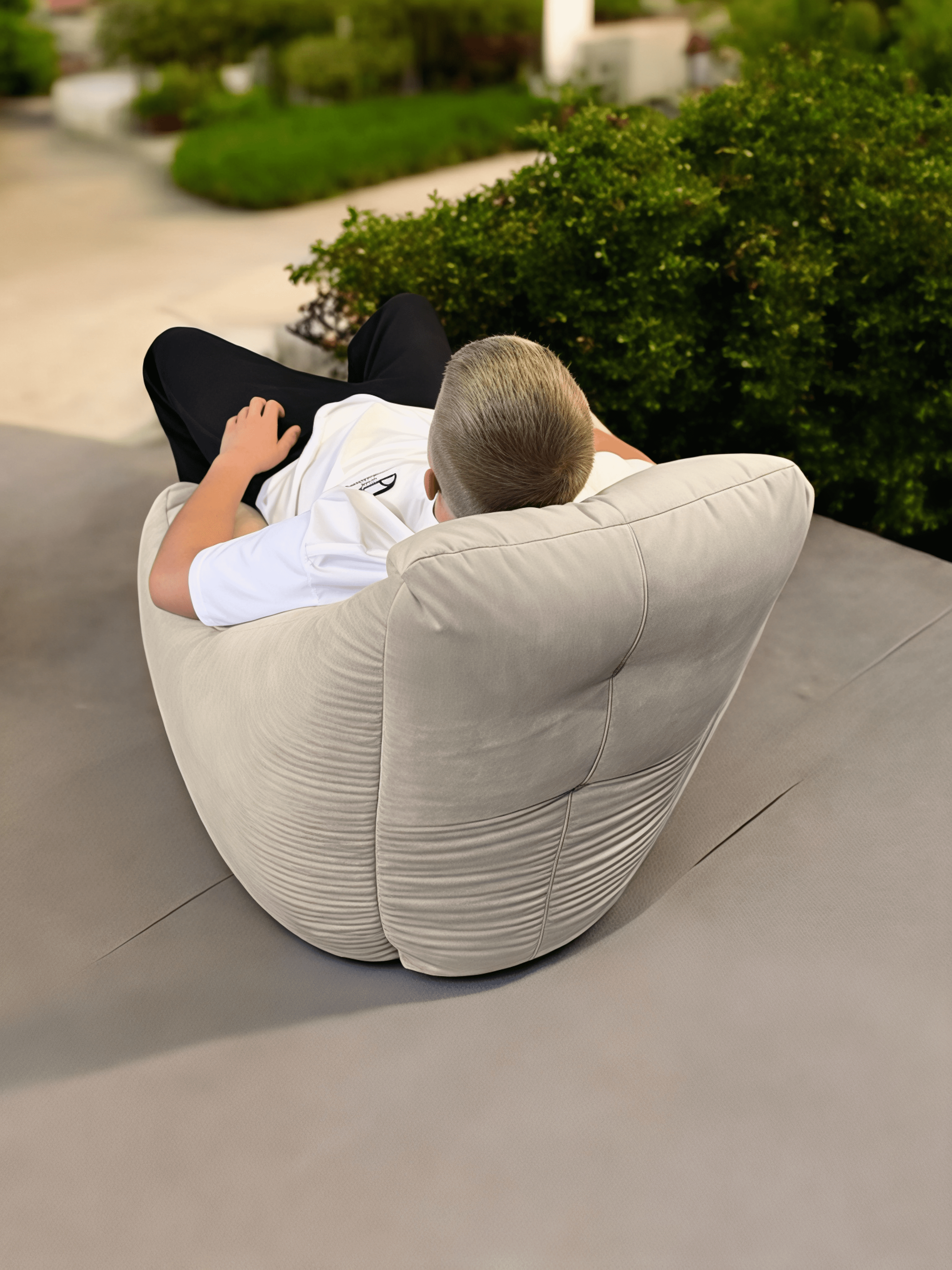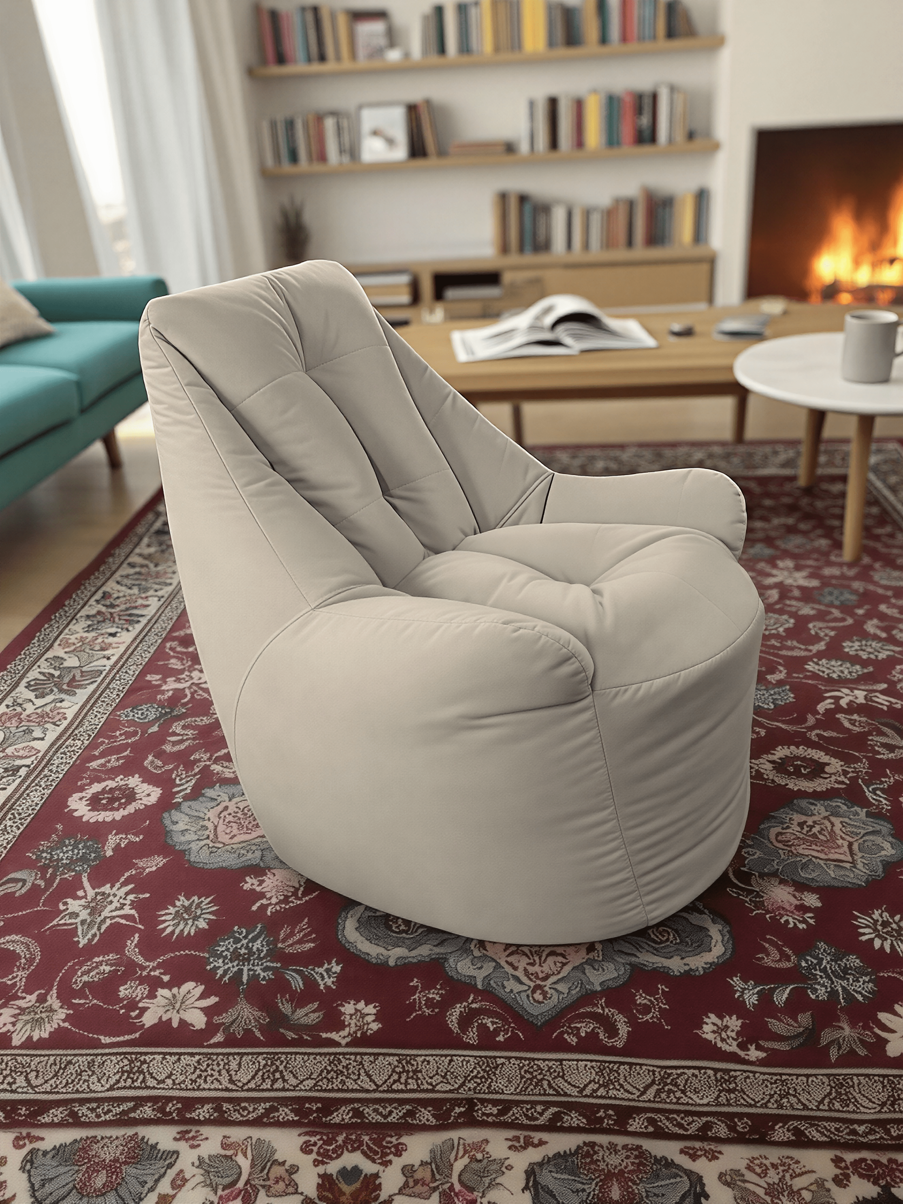 Набивка специальной смеси из традиционного, для бескаркасной мебели гранулированного пенополистирола и фракционного пенополиуретана высокой плотности, позволяет обеспечить оптимальный баланс между мягкостью изделия, его упругостью и скоростью усадки наполнителя.