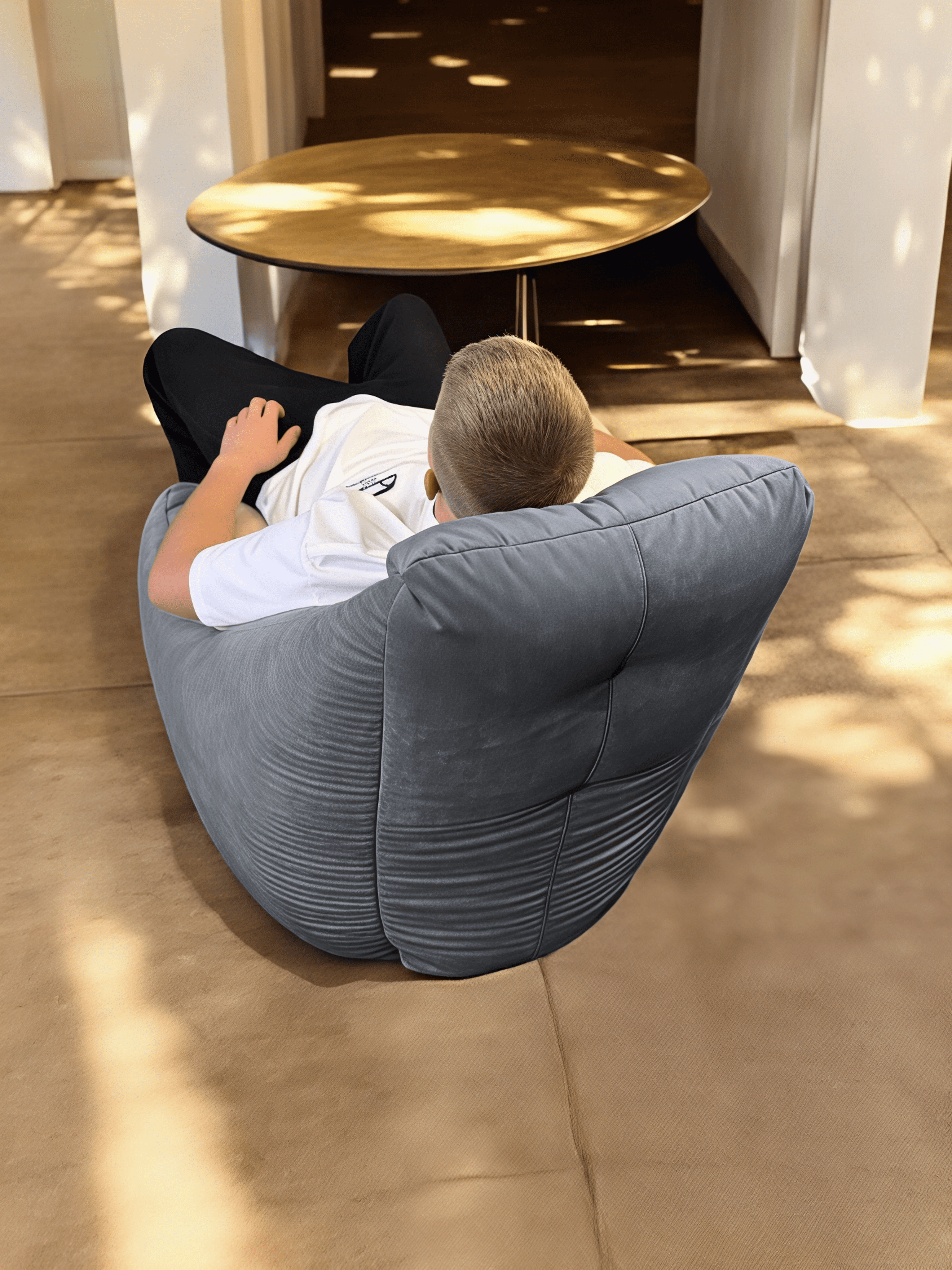 Набивка специальной смеси из традиционного, для бескаркасной мебели гранулированного пенополистирола и фракционного пенополиуретана высокой плотности, позволяет обеспечить оптимальный баланс между мягкостью изделия, его упругостью и скоростью усадки наполнителя.