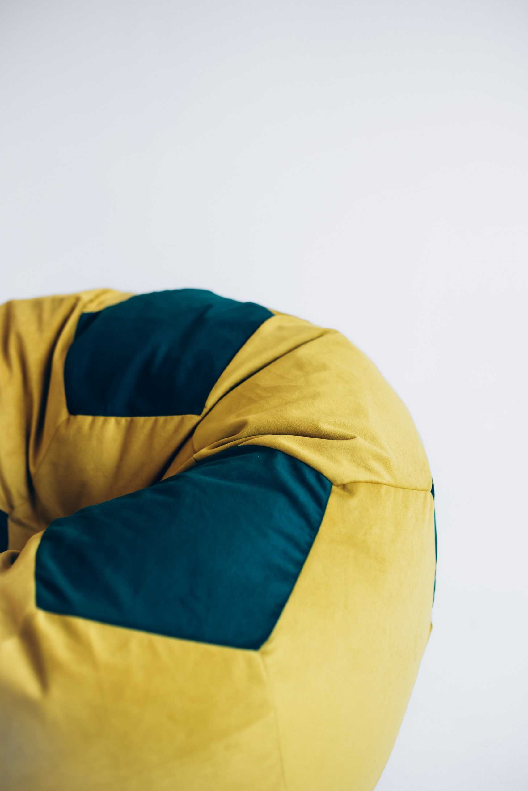 Кресло-мешок «Футбольный мяч» велюр – оливка + зелёный