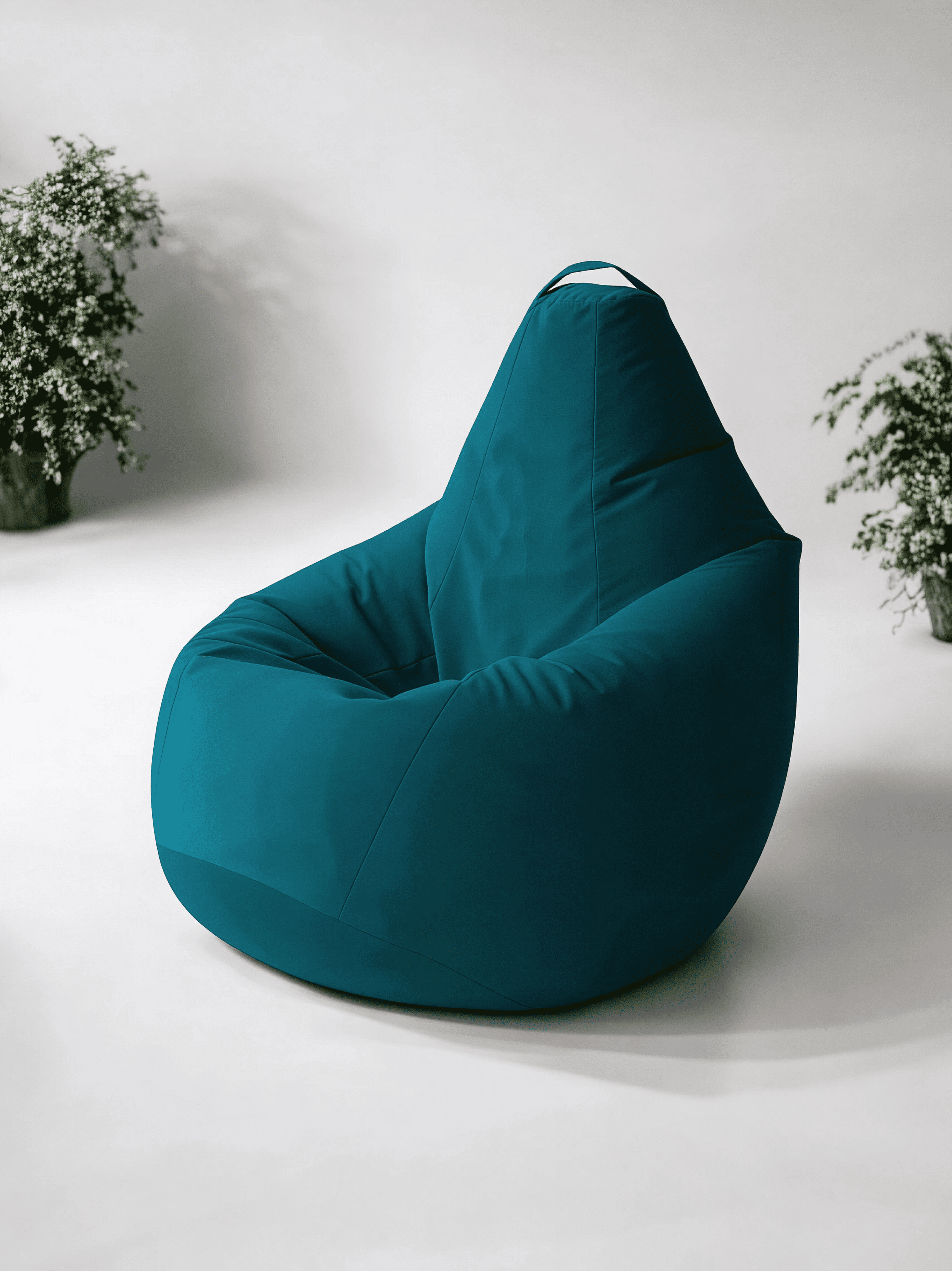 Бескаркасная мебель бирюзового цвета порадует не только вас, но и ваших детей. Расцветка получила своё название от полудрагоценного камня, который имеет оттенок голубого и зелёного. Бирюзовый характеризуется как нежный, свежий, спокойный, чистый, а также размеренный, поэтому может использоваться в дизайне любой комнаты. При установке в зоне отдыха позволит создать свой «оазис» для расслабления или приятного времяпровождения.