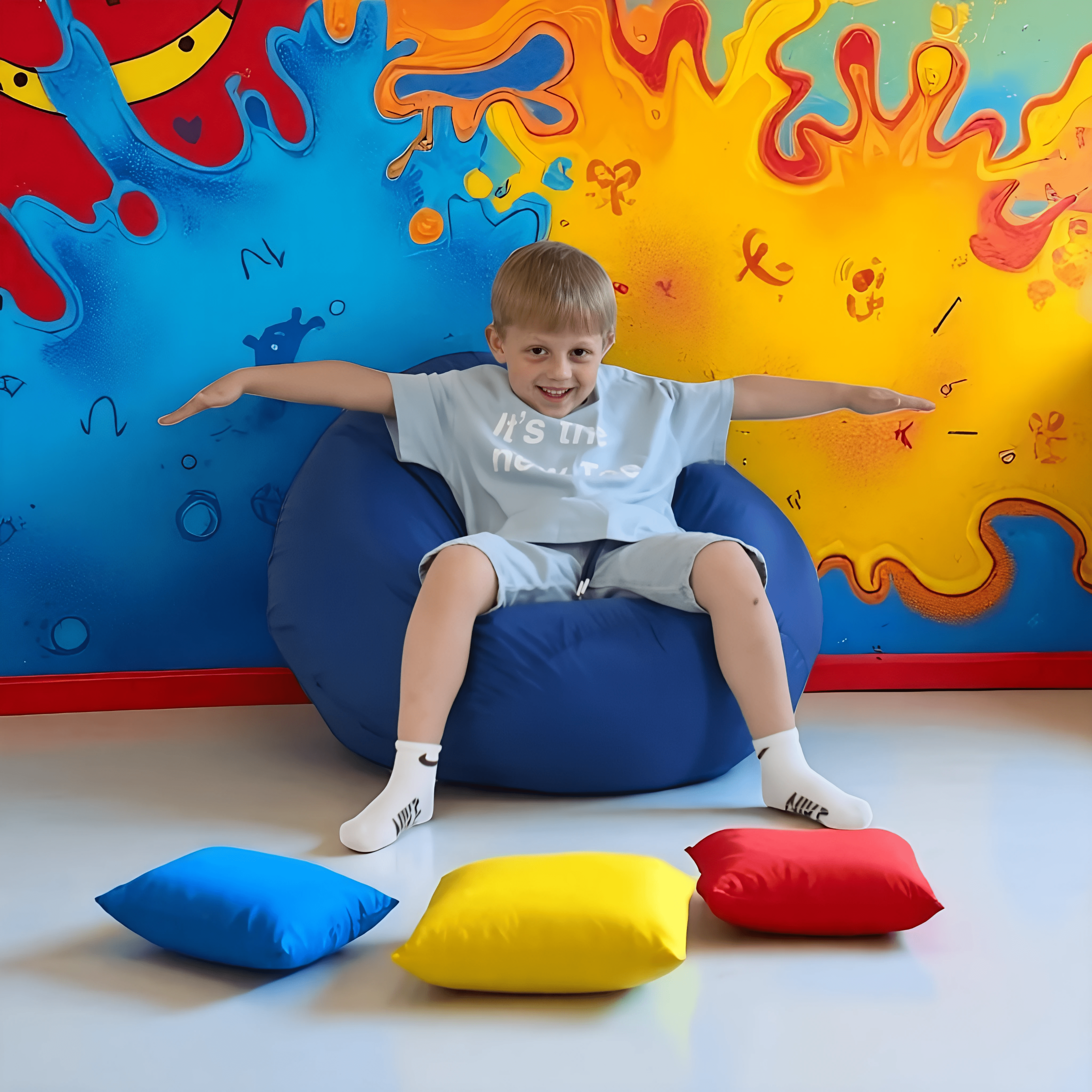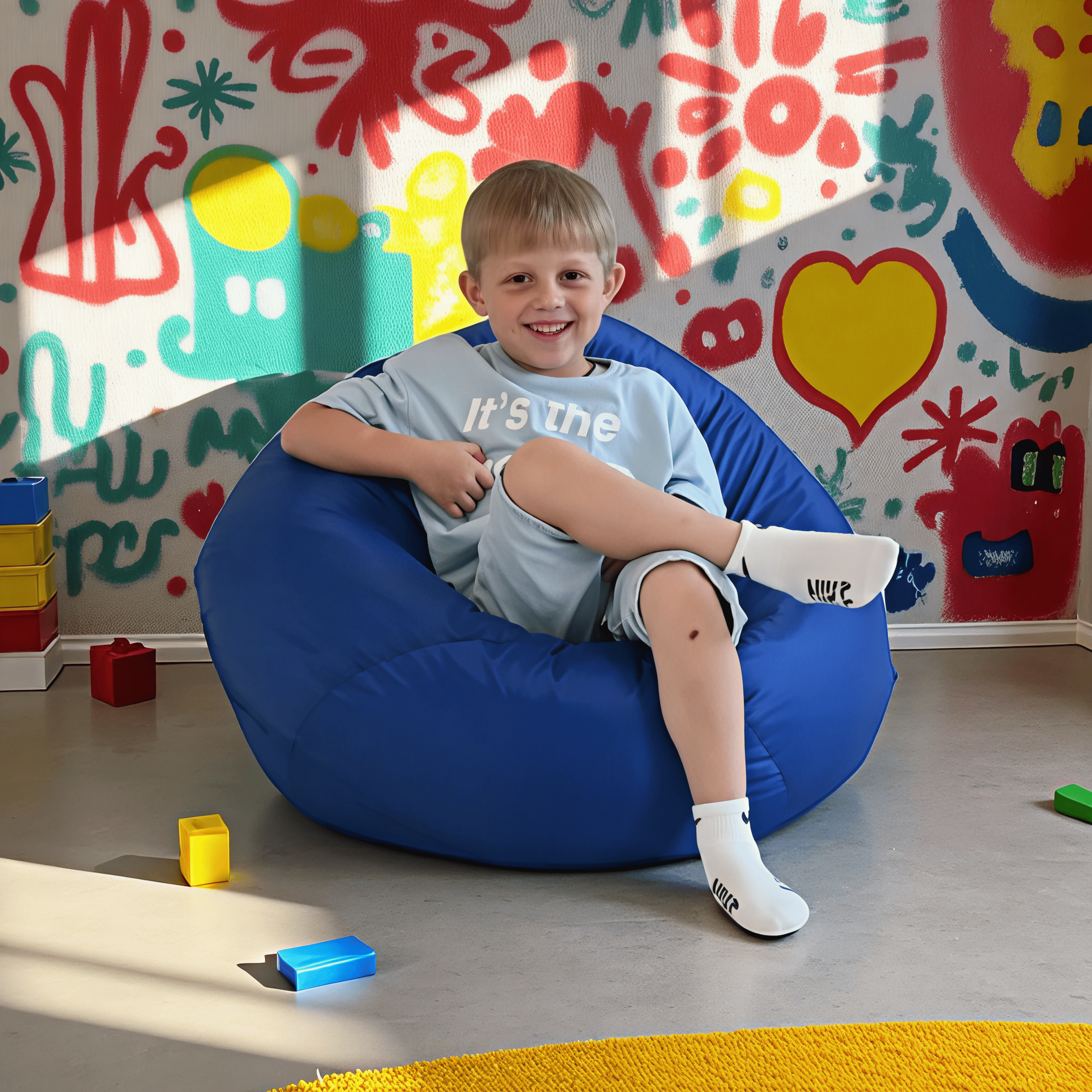 Чехол кресла — мешка изготовлен из современной мягкой ткани со специальной водоотталкивающей пропиткой. Подходит для детей дошкольного возраста.
