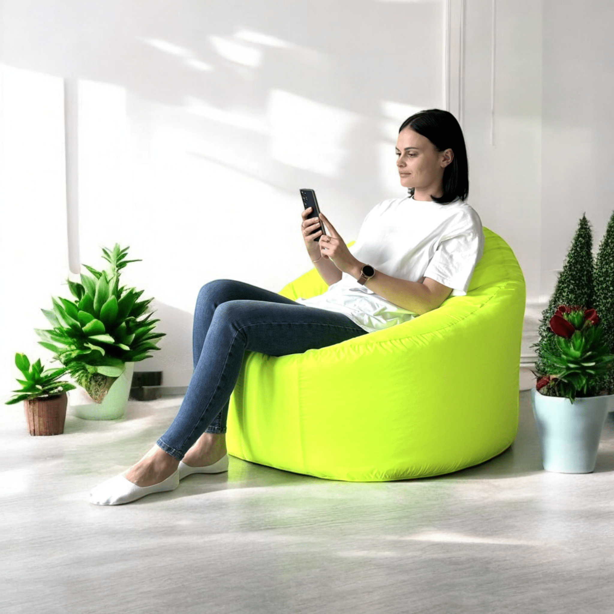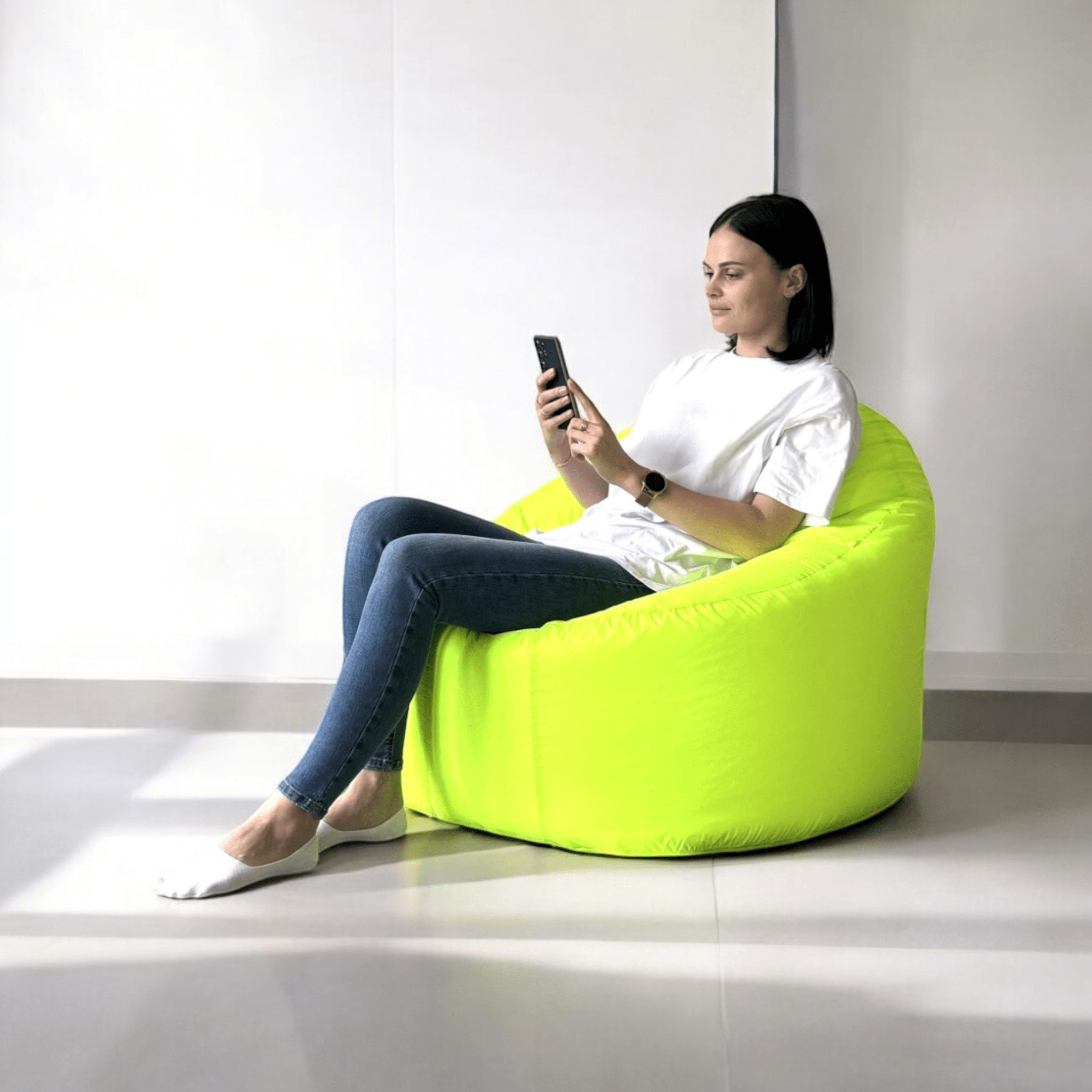 Кресло мешок «Poparada» Выполнен в классической форме «лаунж-пуф», обладает удобной посадкой за счет высоты сидения. Использовать такое кресло удобно любому человеку, в том числе людям зрелого возраста. С такого кресла мешка легче всего вставать. Сидение и изгиб спинки повторяет положение тела, словно обнимая Вас, что способствует полному расслаблению.