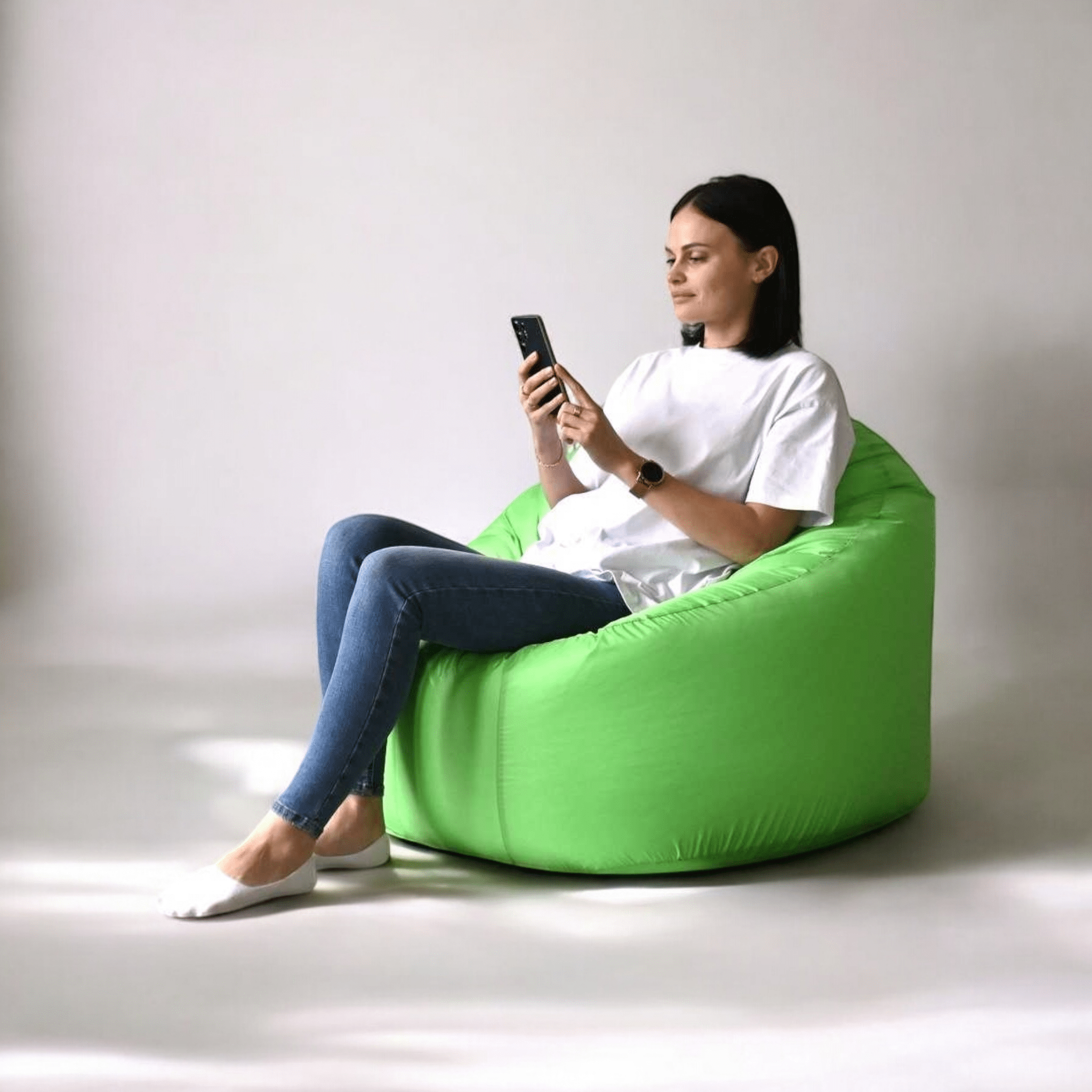 Кресло мешок «Poparada» Выполнен в классической форме «лаунж-пуф», обладает удобной посадкой за счет высоты сидения. Использовать такое кресло удобно любому человеку, в том числе людям зрелого возраста. С такого кресла мешка легче всего вставать. Сидение и изгиб спинки повторяет положение тела, словно обнимая Вас, что способствует полному расслаблению.